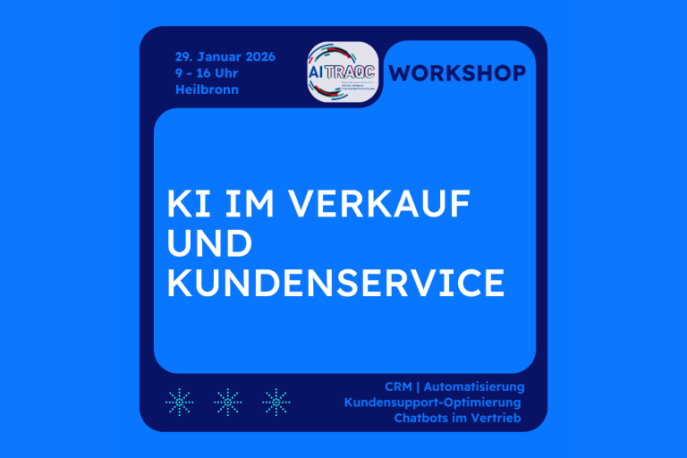 Wir laden Sie herzlich ein zum kostenfreien Basisworkshop „KI-Potenziale für Ihr Unternehmen“, einer Veranstaltung die speziell auf kleine und mittelständische Unternehmen (KMU) in der Region Heilbronn-Franken zugeschnitten ist.