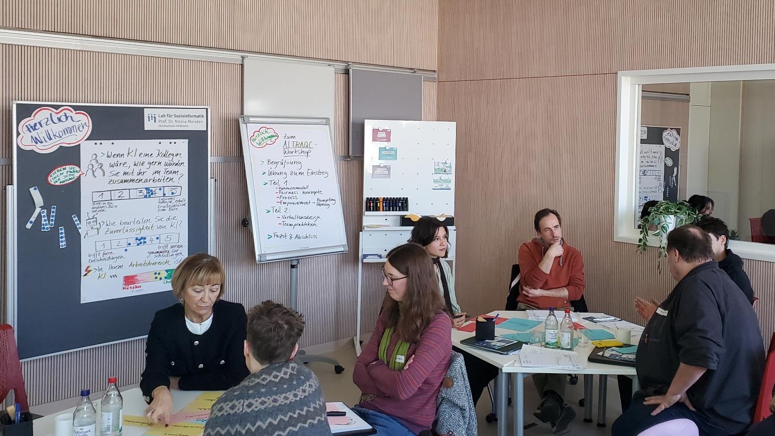 Der Workshop lebte von der Vielfalt seiner Teilnehmenden, die aus ganz unterschiedlichen Unternehmen und Tätigkeitsfeldern stammten. Ihre verschiedenen Perspektiven machten deutlich, dass faire und verantwortungsvolle KI nur gelingen kann, wenn zahlreiche Akteur*innen und Unternehmensbereiche einbezogen werden und der Einsatz von KI stets im jeweiligen Anwendungsfall betrachtet und kontinuierlich geprüft wird. Menschliche Verantwortungsübernahme und Fachexpertise sind dafür unerlässlich.