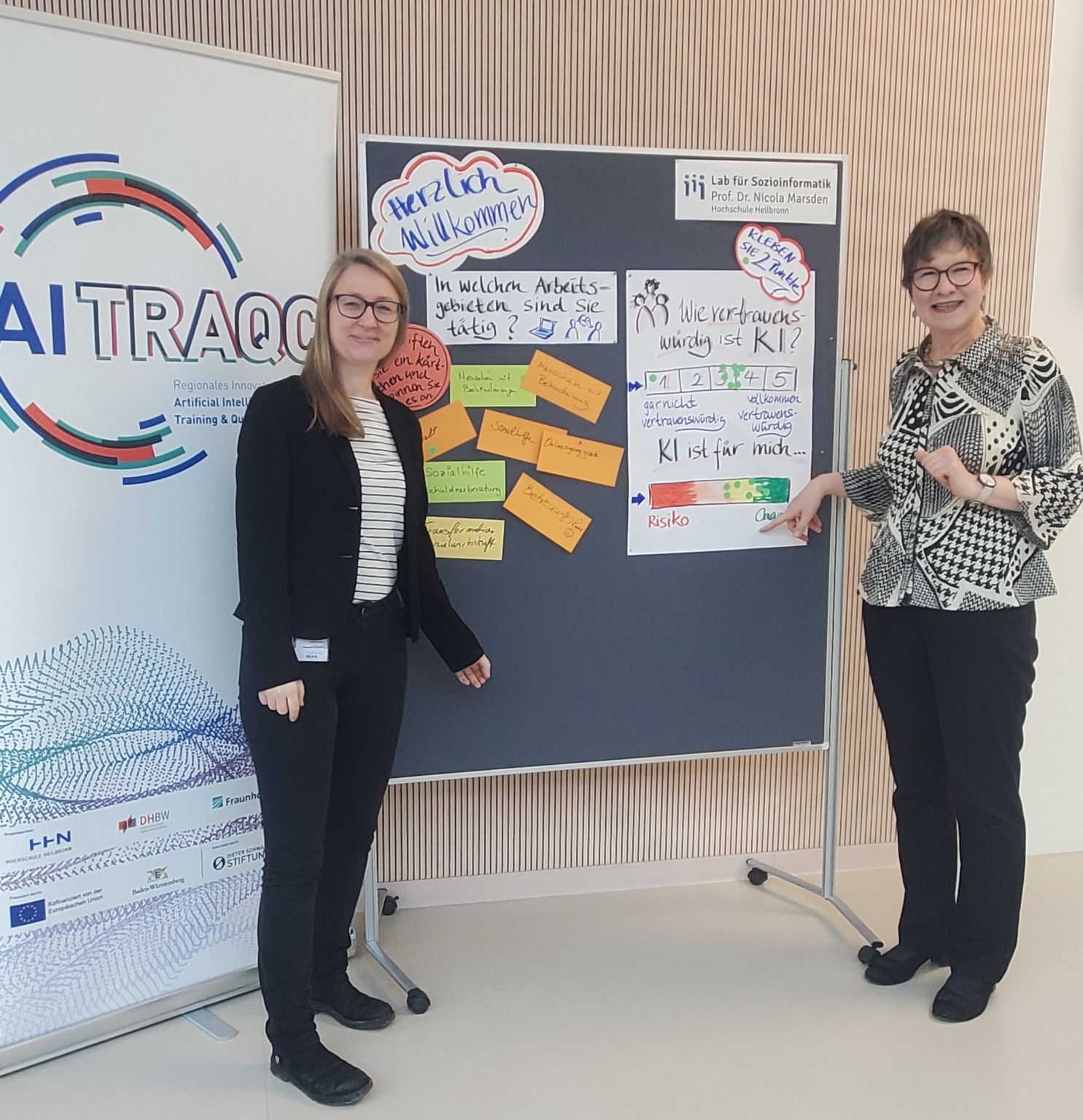 Diese Frage stand im Mittelpunkt des Besuchs des Referats 35 für Sozial- und Eingliederungshilfe des Ministeriums für Soziales, Gesundheit und Integration Baden-Württemberg unter Leitung von Walter Böttiger im Dezember bei AI TRAQC und dem Lab für Sozioinformatik von Prof. Dr. Nicola Marsden an der Hochschule Heilbronn. Gemeinsam mit dem AI TRAQC-Team wurden Ansätze, Methoden und konkrete Anwendungsfelder für eine werteorientierte Einführung und Nutzung von KI diskutiert.